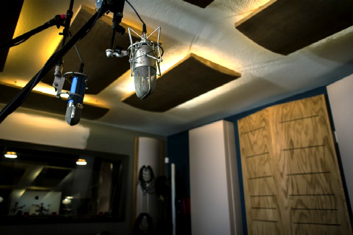 The final completed room, set up for recording an instrument: