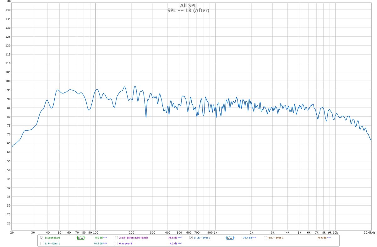 NOTE: I was using my yamaha HS8's for the BEFORE measurements and the mix position was closer to the front wall by about a foot and a half or so. The AFTER measurements were made with my Eve SC407 monitors spaced a bit further apart (very carefully measured from side and front walls to get equal placement). The soundcard is also different for each. BEFORE was with my allen and heath ZED R16 (which I am now selling) and the AFTER is with my friend's Focusrite Clarett 2 Pre. I did run calibration for each.