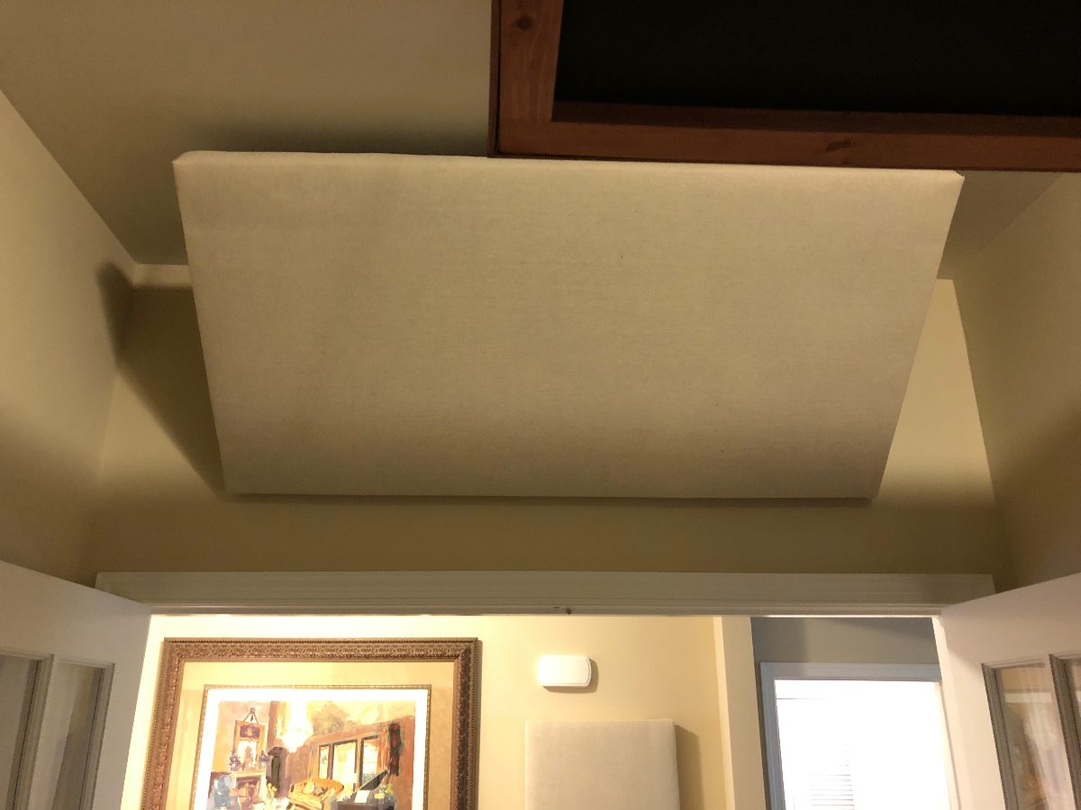 The other panel for above the French doors is ready. I have about 4 different methods/ways to use installing up in the ceiling [plastic anchors, butterfly bolts, screw-in hooks or eyebolts.