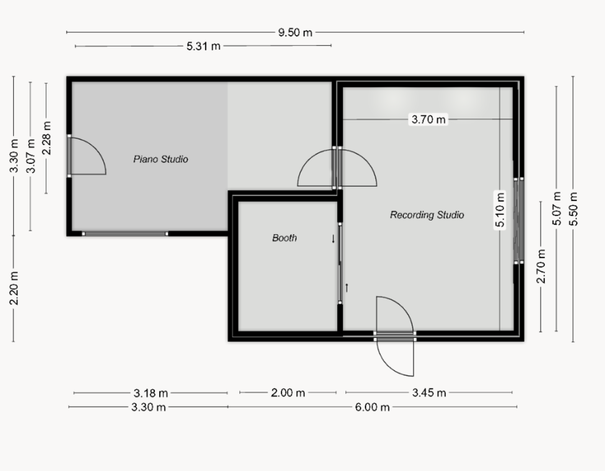 Recording Studio (acoustic dimension): 5.1 x 3.7m