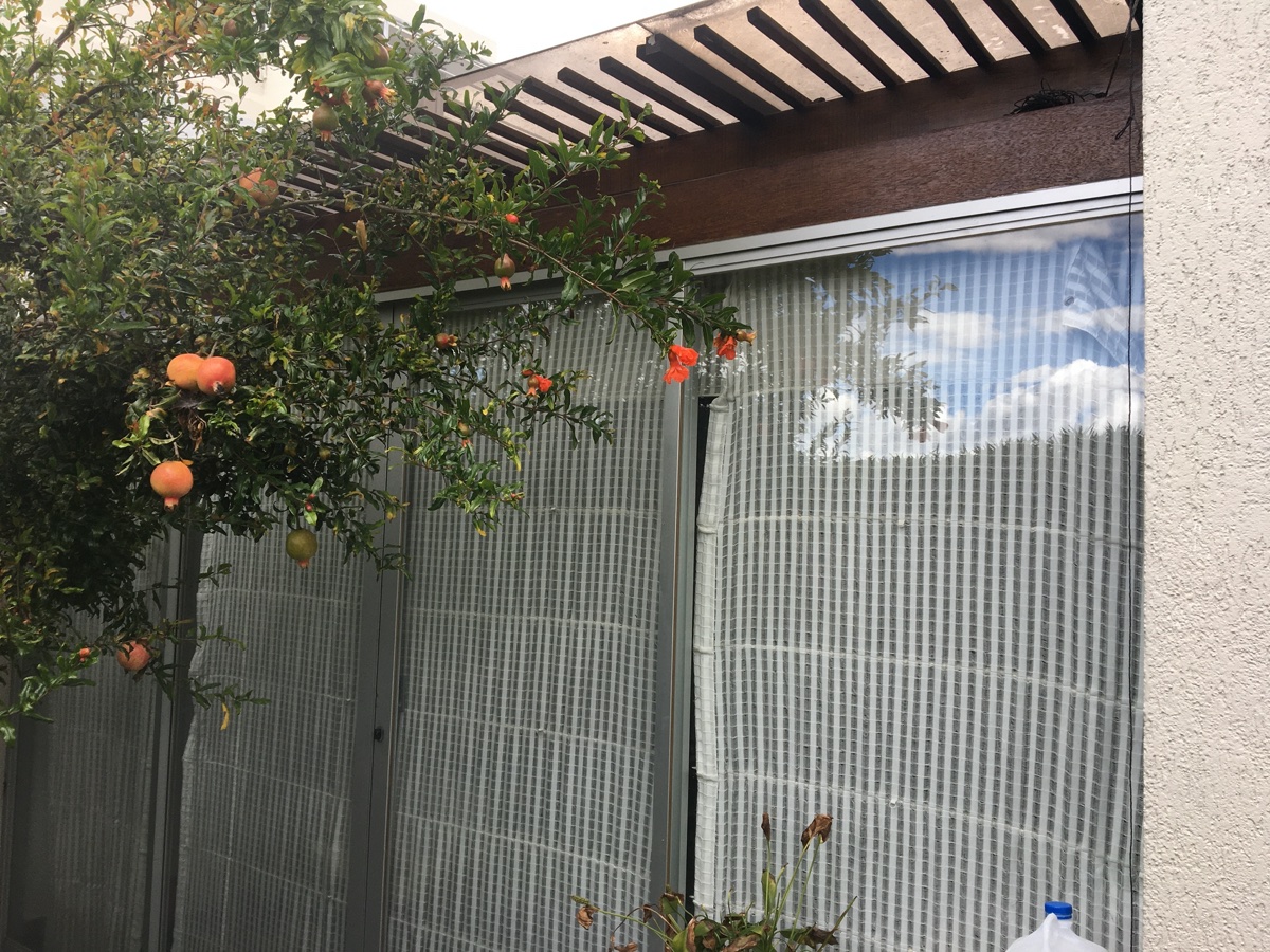 Yes, it is pretty much a pergola which has been walled off to make it an inside space. The previous owners actually used it as a cinema room... they lay down some black material underneath the glass to cut out the scorching equatorial sun during the day... (it gets VERY hot in here!) I'd say the glass is about 4-5mm thick, not sure what type of glass (sorry!) I've attached a few photos below to help you picture it.