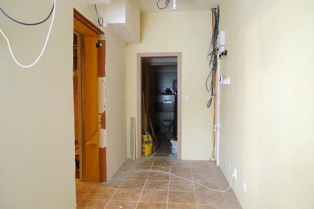 Something a little different but necessary all the same - we cleared the entire L-shaped corridor, filled, sanded and painted the ceiling, walls and baffle boxes.