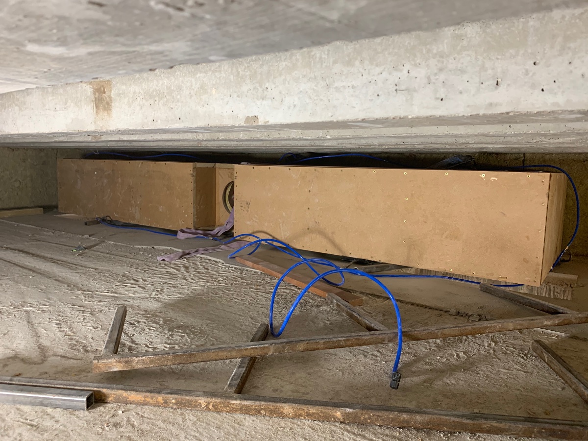 Right! We definitely don't want any solid mechanical connections there!With the holes in the ceiling I decided to remove the timber altogether, then I plan to fit the sleeves, then shutter around them and pour concrete for mass to make the holes exactly right. As I’m writing this I have realised that this will couple the sleeve to the ceiling which we don’t want