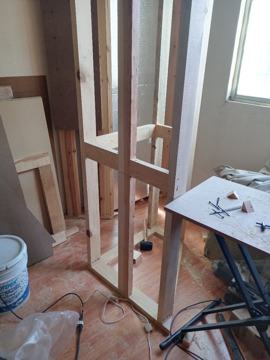 I then had to learn wood framing and find someone who could lend me a table saw (we burnt the motor on ours when an accidental slip put the board in an angle to the saw, forcing it to spin out of place and exert extreme force on the motor), and a jointer.