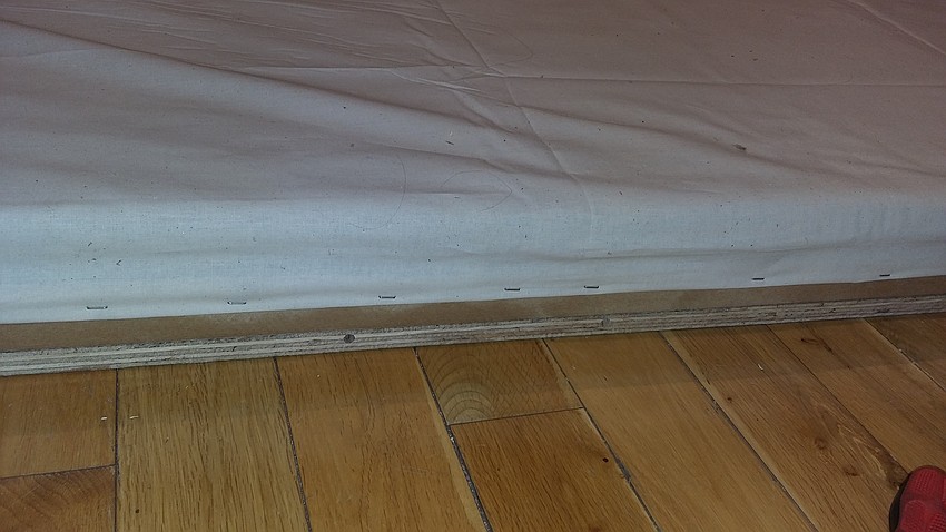 I've still to add a wooden trim along the sides / edges that will cover up most of the fabric without touching the floor. Also some Danish Oil to make the plywood surface look a bit posher.