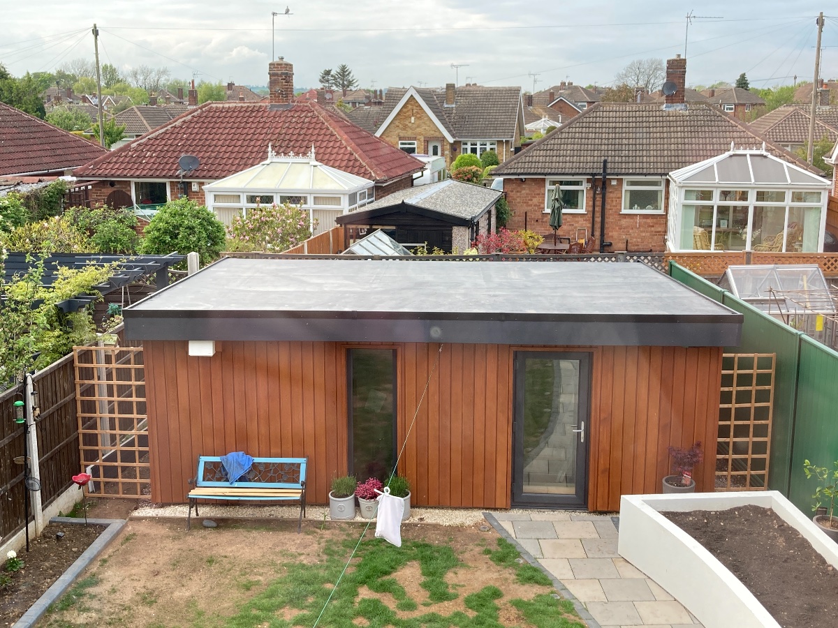 On Friday with help from my brother in law and my Dad we glued down the EPDM roof and fitted the edge trim. This was one of those jobs that just needed doing and we kept getting rained off. It looks a lot better from bedroom windows now!