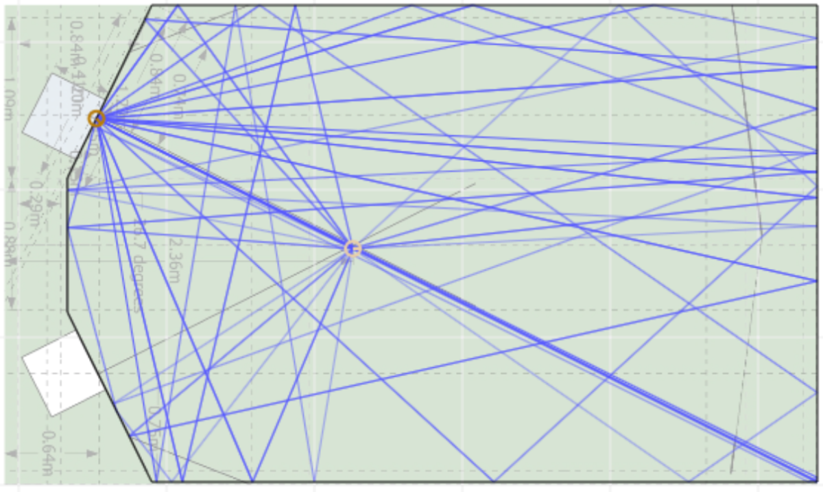 I'm wondering if what I'm hearing could be related to reflections off my cupboard doors? The AMRAY trace below suggests I could currently be getting sound bouncing off the back then off the cupboard doors, but I defo hear a harsh sound. I tried adding an EQ to music playing, turning down 10KHz and above and that helped. All together a disappointing evening. I need help!!