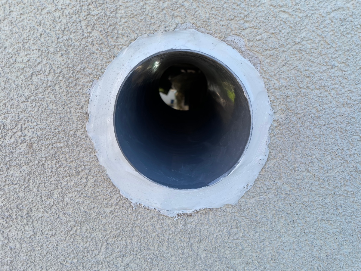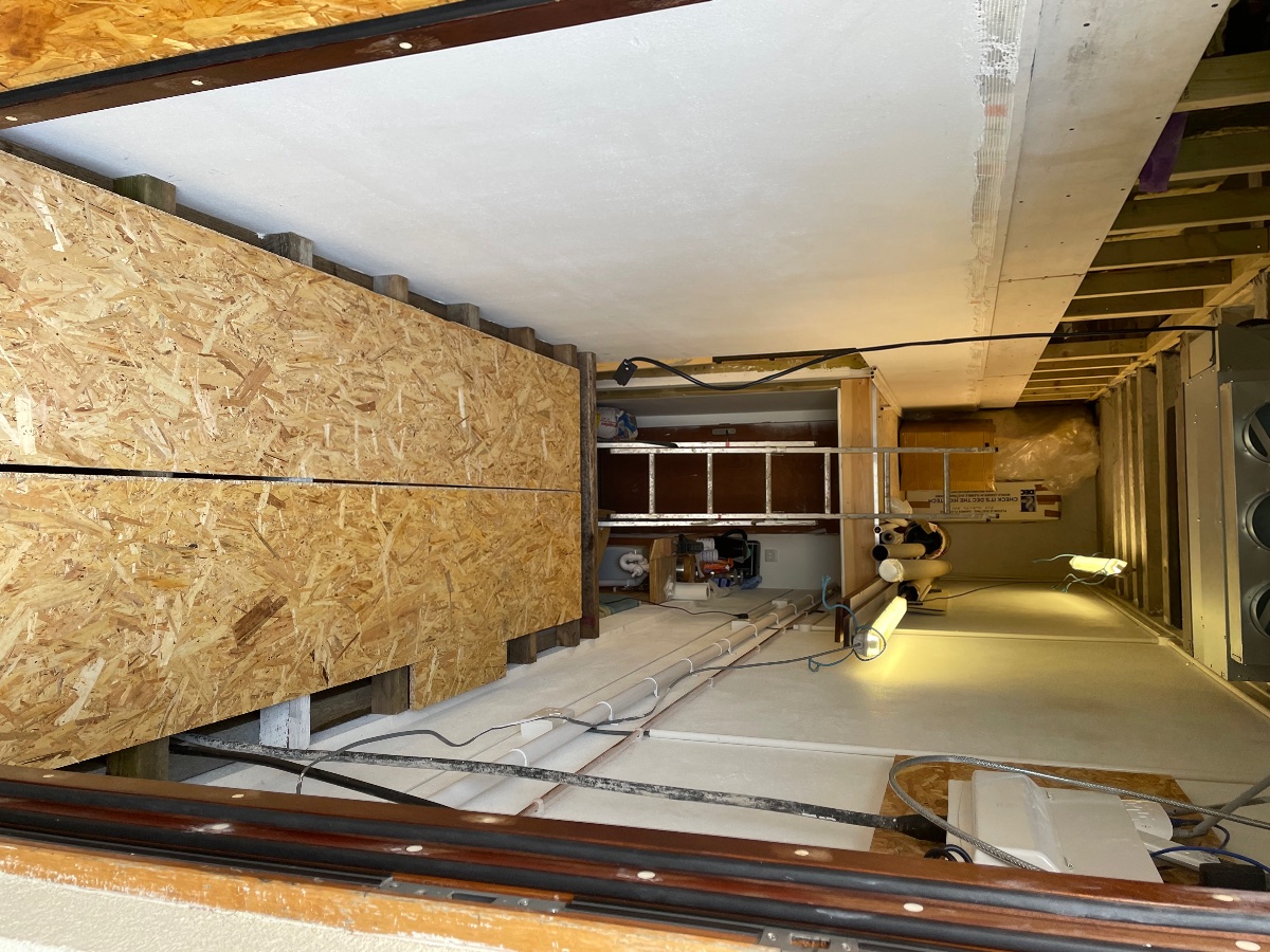 Next is some tweaking of the position as the sleeves are not optimal in the holes in the ceiling. I want to put the sleeves in and concrete around them with a plastic covered shutter so I can ensure a caulk gap around the sleeves.