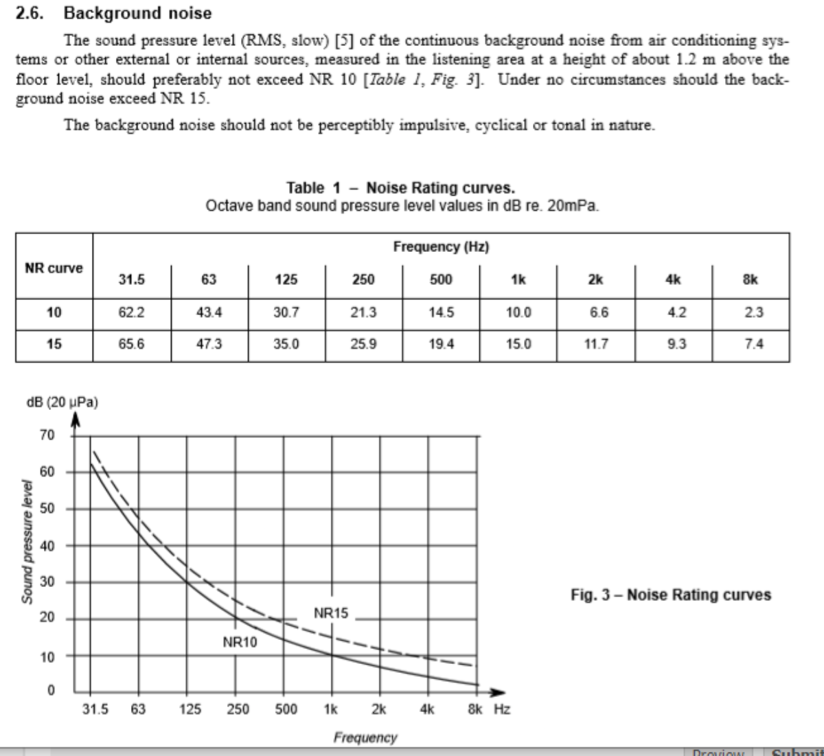 It has this graph showing acceptable background noise levels at different frequency ranges. You can use it to determine if your room fits the bill. My post shows how I measured the noise using the real time analysis in REW;
