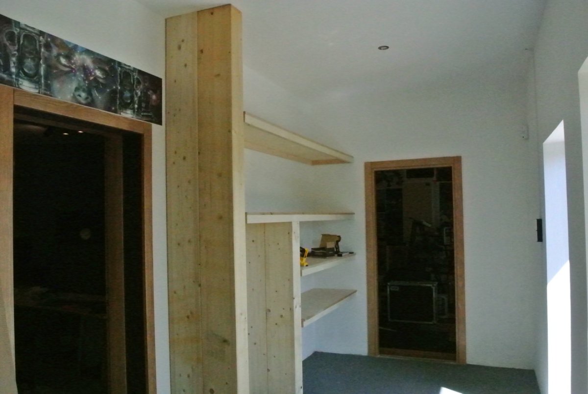 We also discovered that it was a huge mistake to not put bass traps in the room. The bass frequencies were huge and all over the room at times and very bad in the corners, in the front of the room. I do not know about the drum corner or where the fuse box was but in my synth corner, it was horrible..