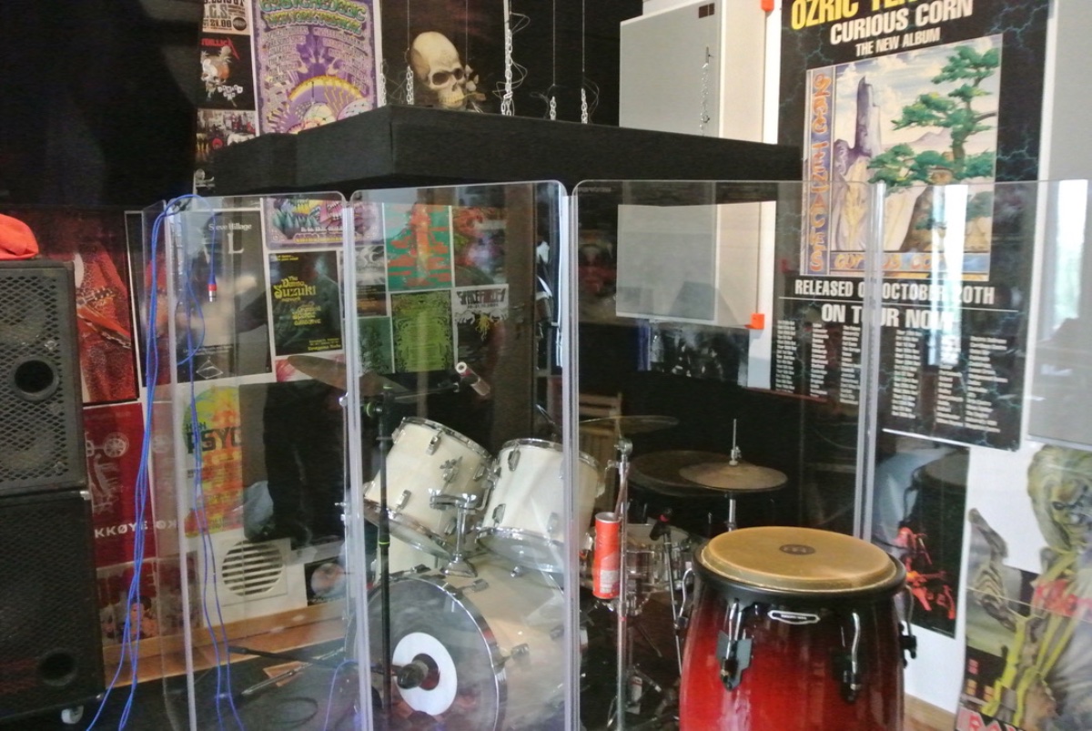 >Building some gobos to surround the drum kit might also help a little. You'll need gobos with one side as a hard back to get isolation, the >insulation alone won't do it. Sometimes people even add a "roof" to this for even more isolation!