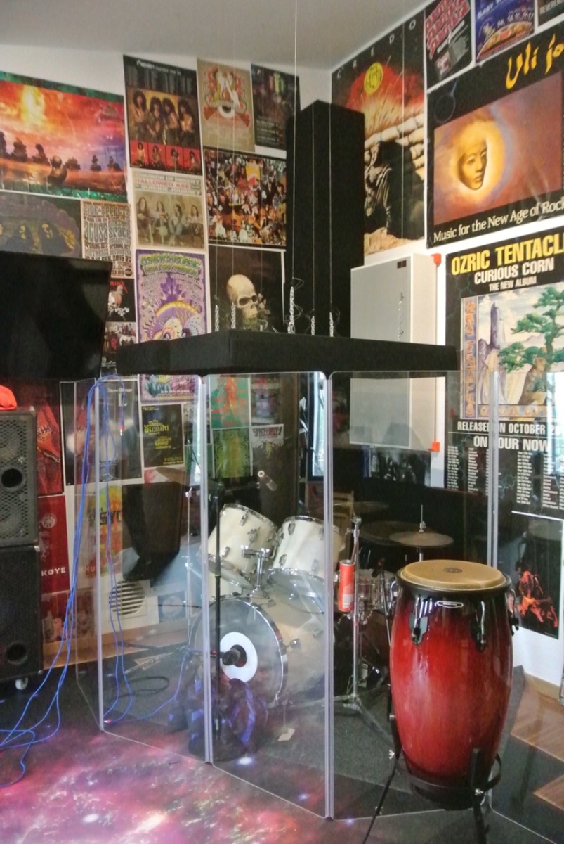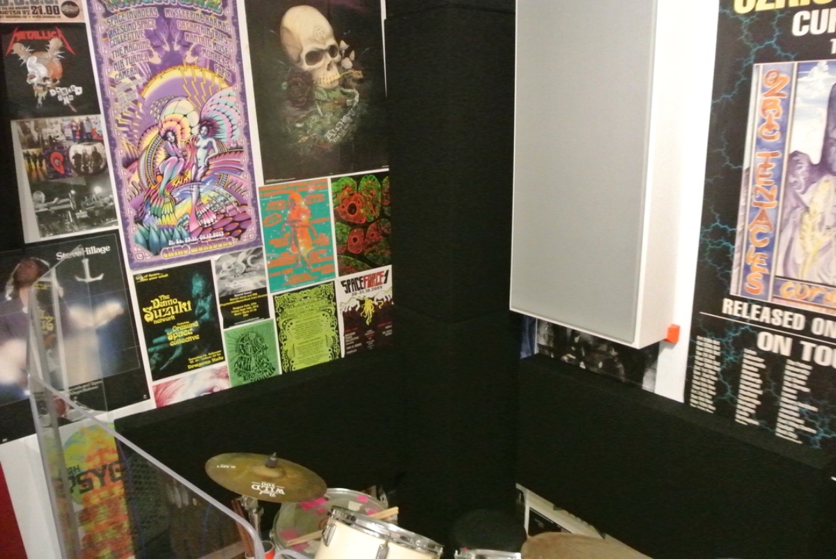 I have managed to install bass traps in all the corners and we have made a sort of drum cage with plexiglass panels and then some bass traps hanging from the ceiling and I have to say this has smoothed out the room great and it very pleasant for bands and we get an excellent drum sound still..