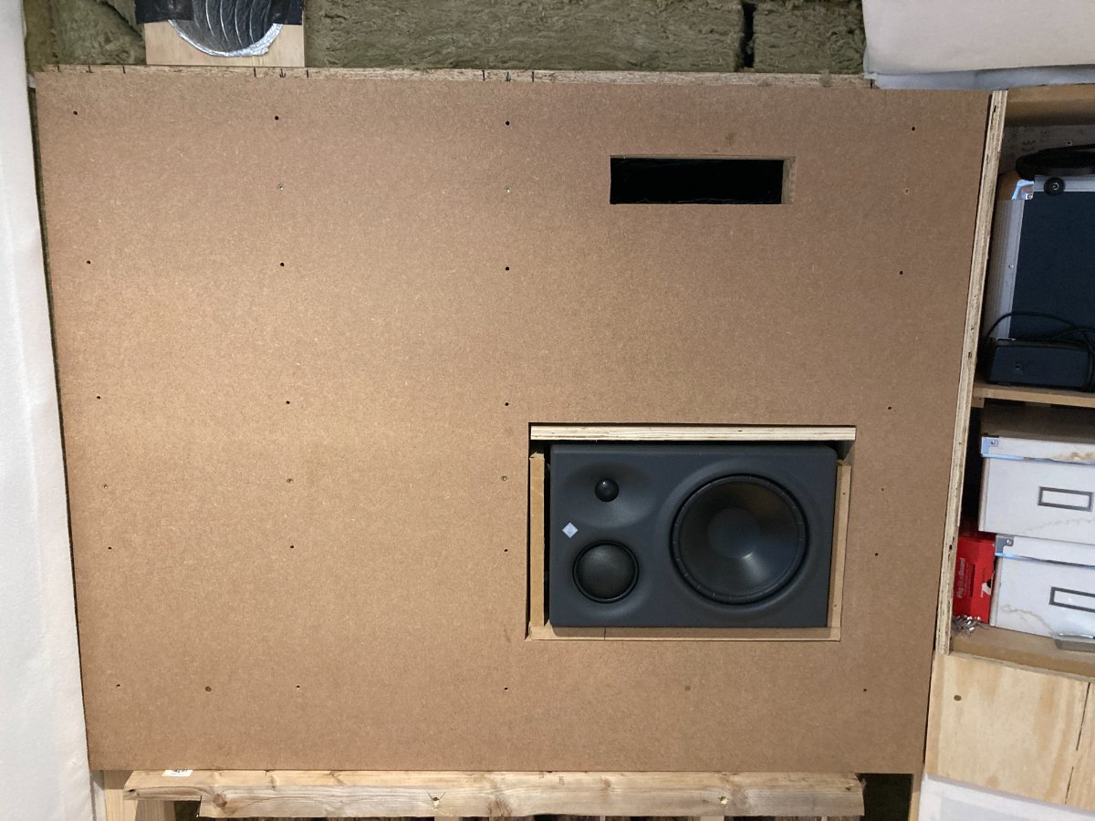 The first step was to take apart those walls to implement a redesigned speaker mount, create more air flow between the cavity behind the soffit fronts and the lower cavity and add more mass to the soffit fronts. The aim was to reduce speaker vibrations from reaching and actuating the soffit walls.