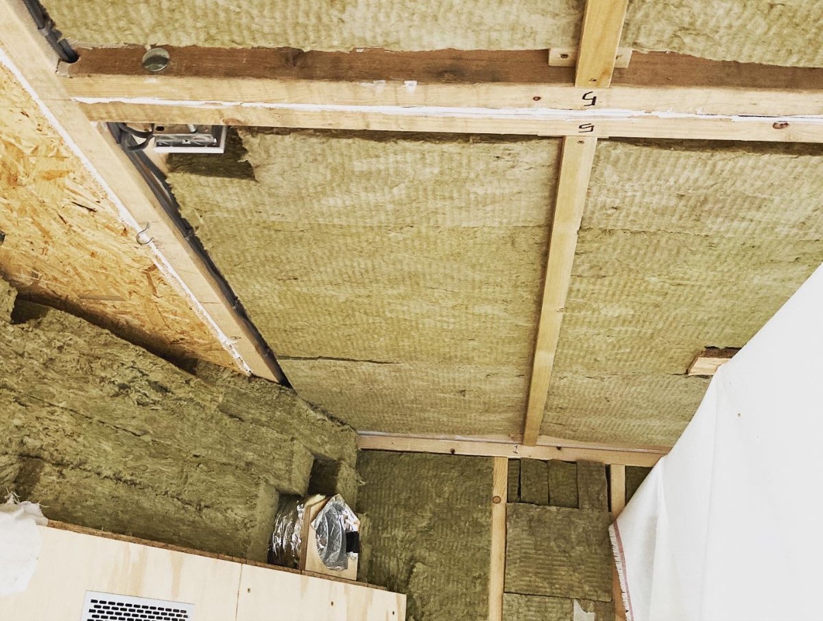 Then I needed to fill all the stud bays with rockwool, which made the room really odd sounding to talk in – a bit like I would imagine it would feel like to have your mouth filled with cotton wool!