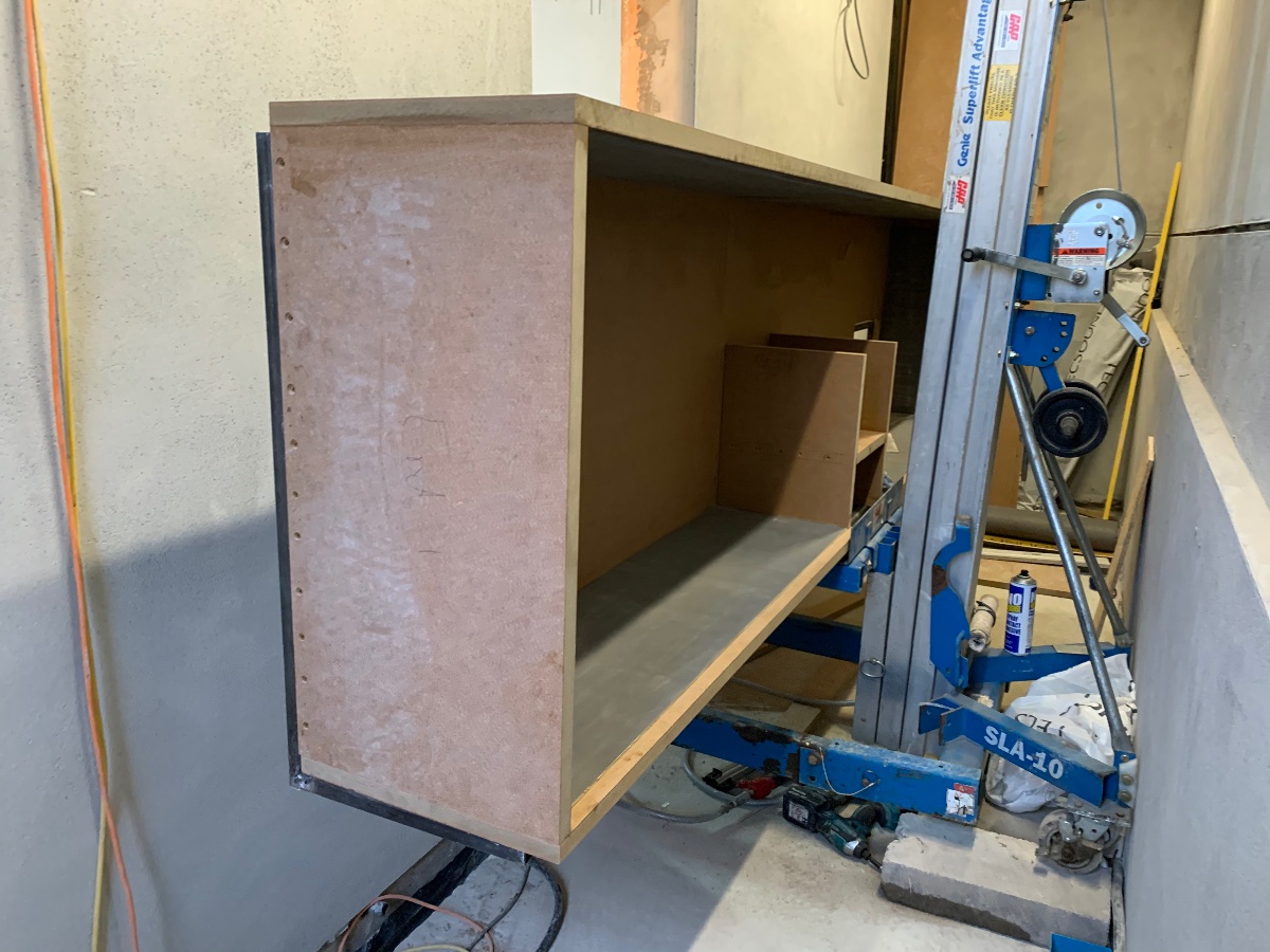 It's looking good, Tom. That thing is huge! It looks even bigger in real life than it did in the SketchUp model. I can't wait to see how you rotate it to horizontal in that space up the top, then slide it in. That's gonna be "fun"!
