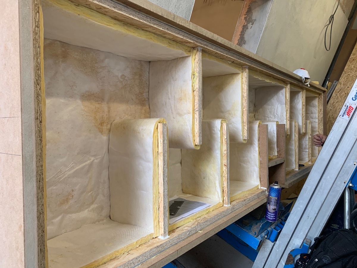 The baffles were pinned and glued together and we’ll fit them next week then the duct liner and top of the box.