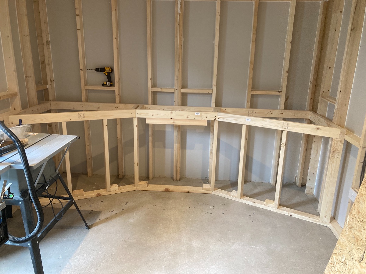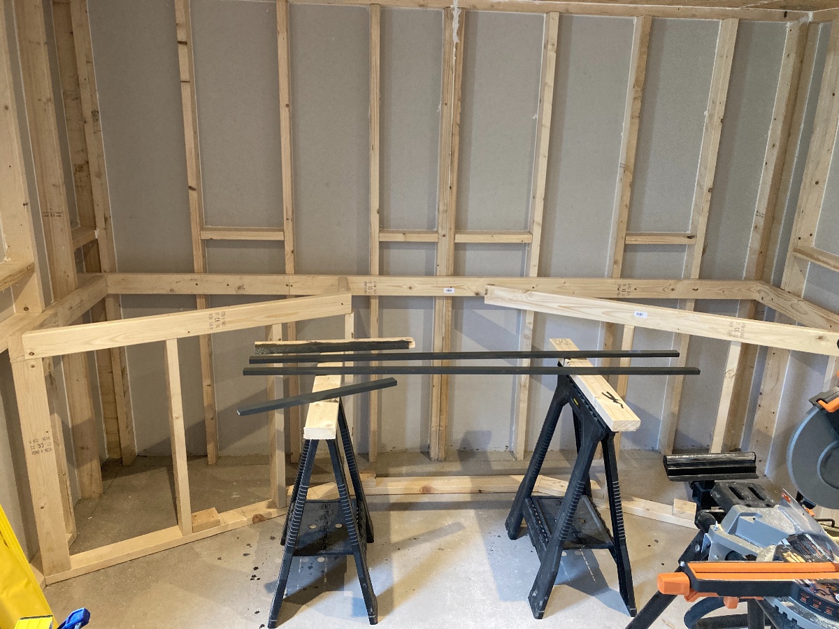 I also silicon sealed some 3x2 at the back of the room that will be the bottom of the fabric frame in front of the hangers. This is so I know where to lay the floor up to.
