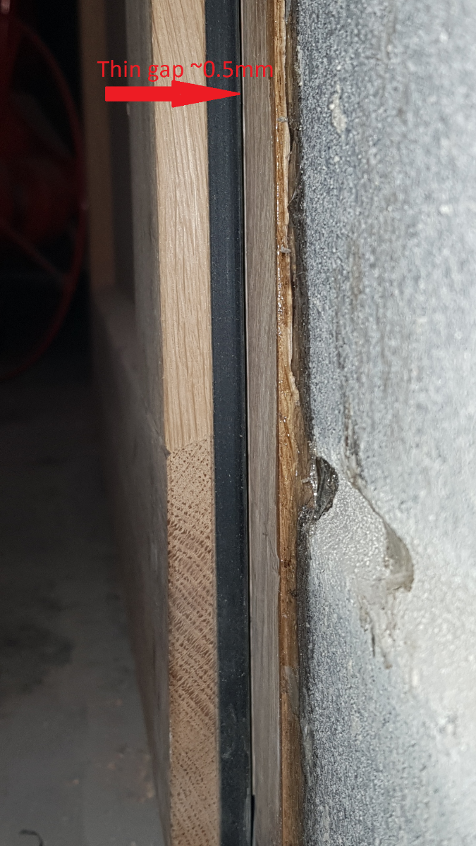 But ! Yes there is a "but" :(... As the seal in the middle of the door is perfectly compressed, the thinner seal doesn't touch the wood at some points, it's really close, 0.5mm away, but doesn't touch or compress, As you can see by zooming here :