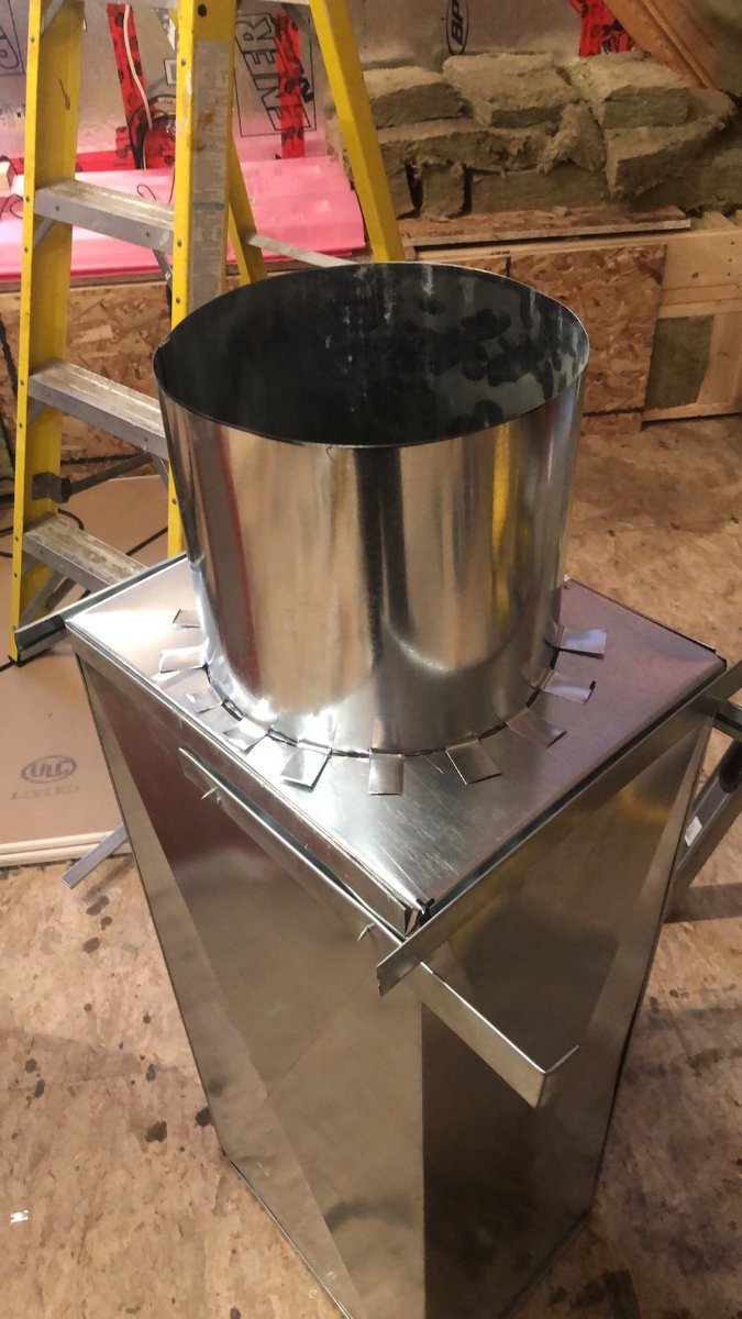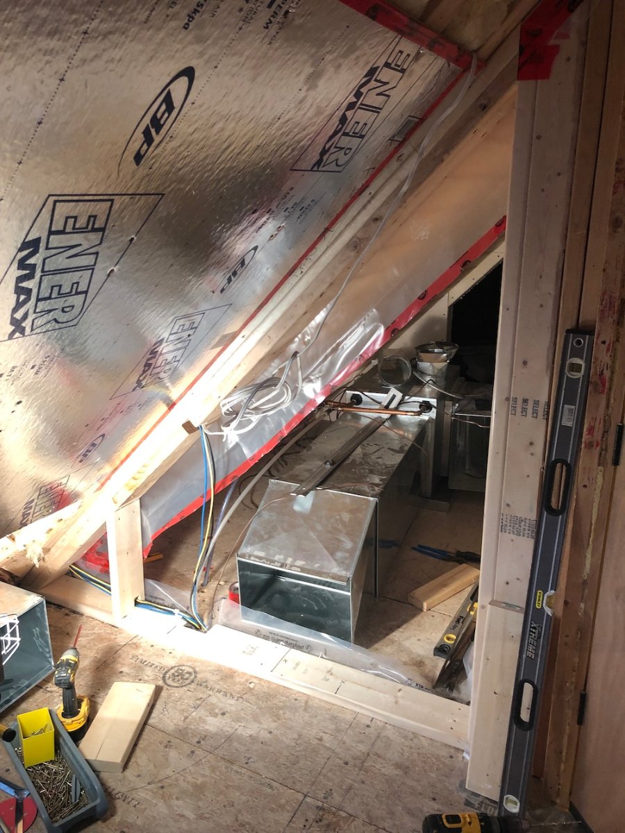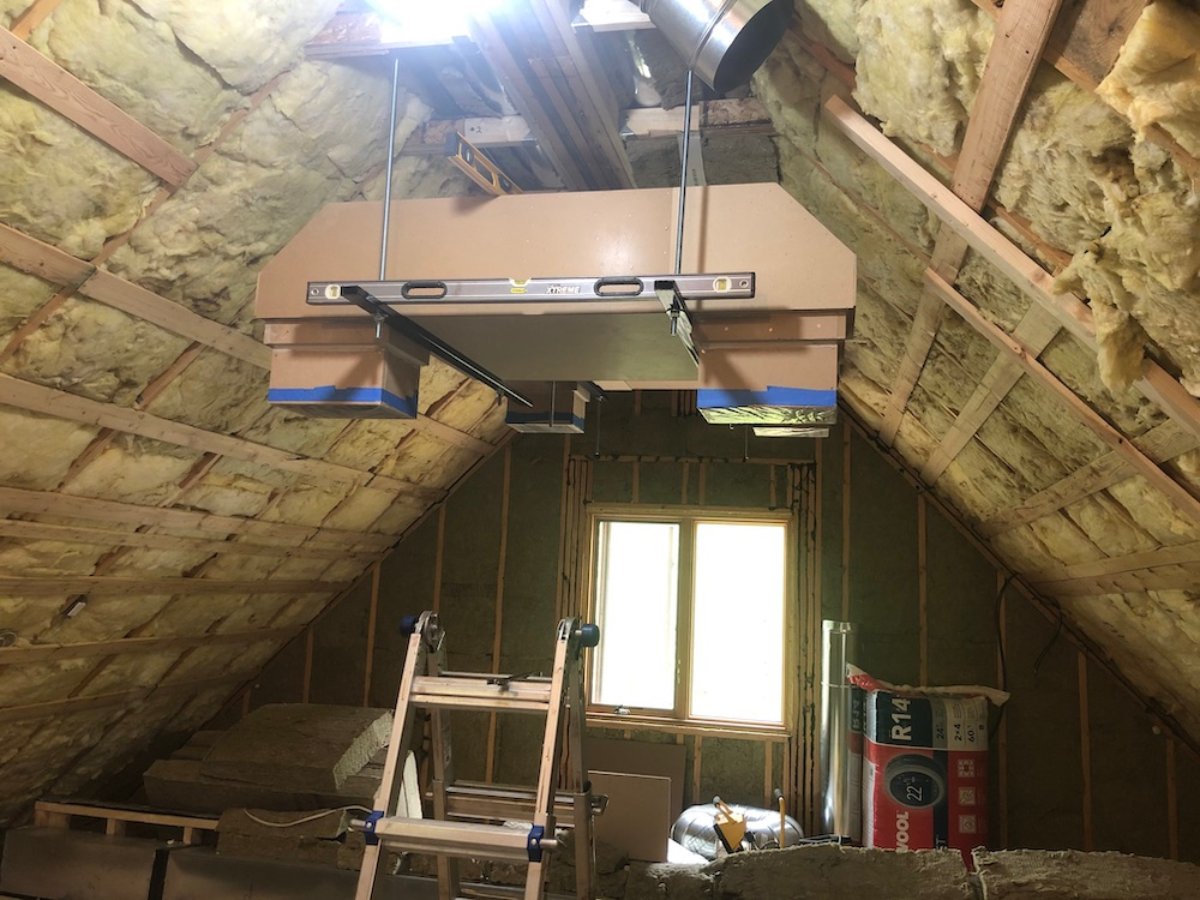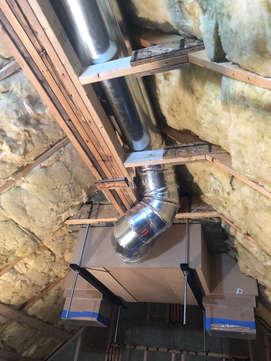 I had to install the 10" round duct work before lifting the box into place because once the box is up I wouldn't have enough room for install the insulation all around the duct work.