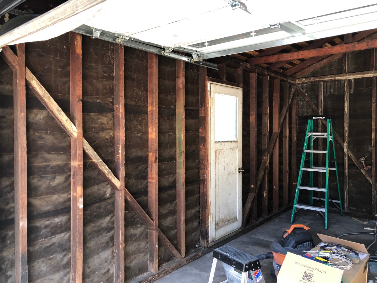 At this point, all 3 walls, including the gable end above the garage door and the ceiling are "beefed up". I am sealing up the garage door as we speak. next up is building the interior frame.
