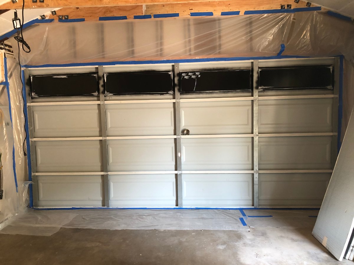 I also taped off around the inside of the garage door to prepare for the "Second Skin" sound deadening paint. This stuff is meant to be used on cars to deaden the reverberation inside the car, but can be used on anything metal. I'm excited to see how it will perform on the metal garage door. This is the stuff. https://www.secondskinaudio.com/sound-d ... rum-liquid