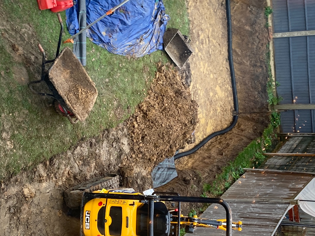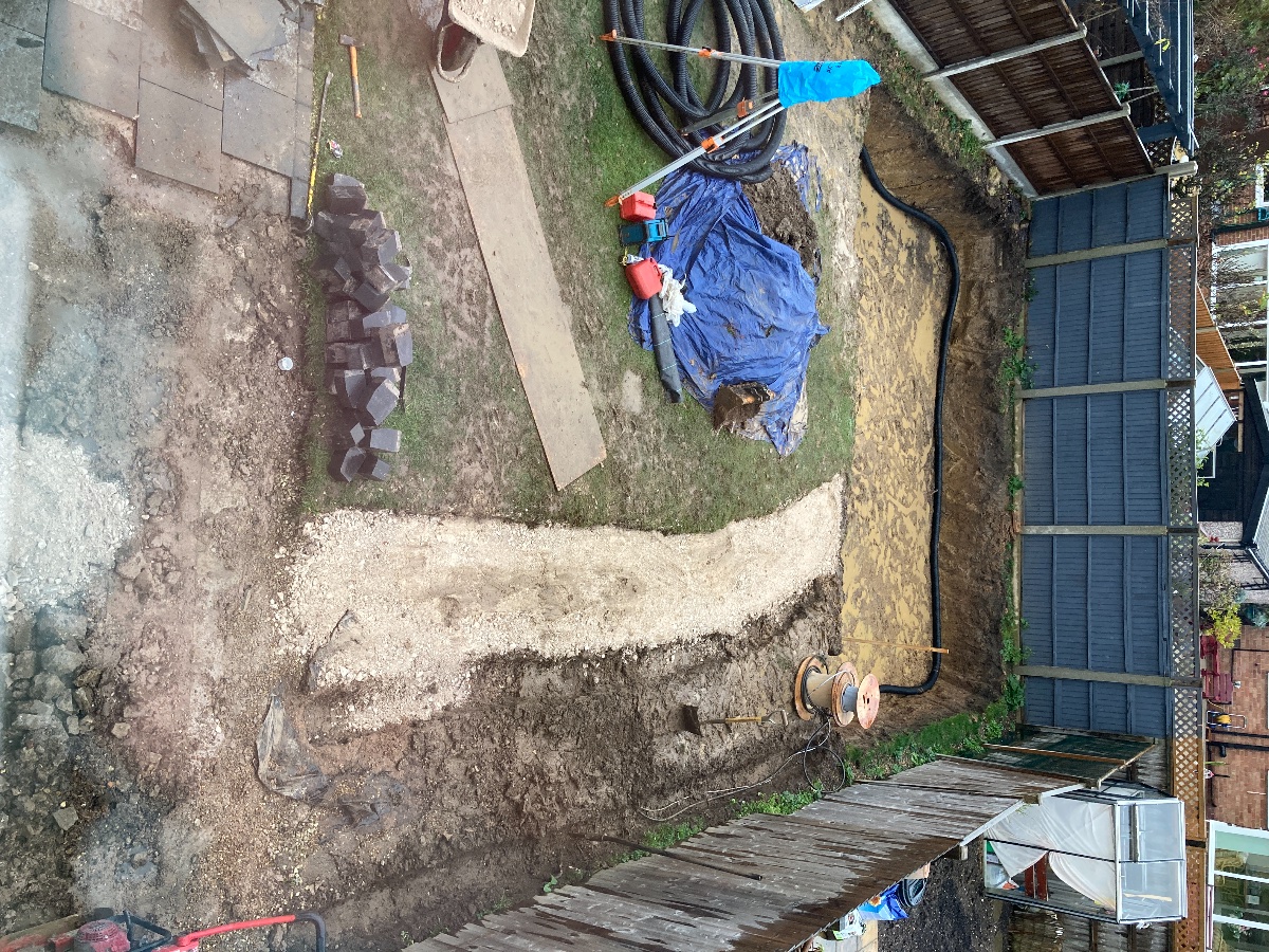 Alongside this they've laid my armoured power and ethernet, raised half the patio and got the ground ready for our raised bed and path to the studio. I'm impressed with what they've achieved in four days.