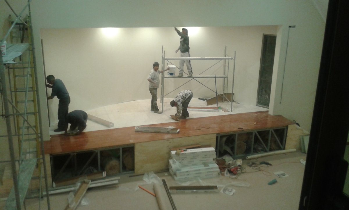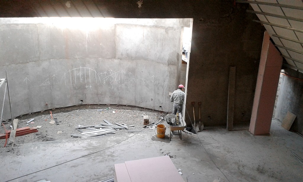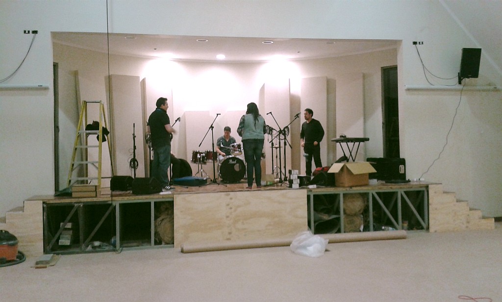 I warned them just how bad it was going to be to have a live rock band in that curved shell... nobody had considered that. So they set up the band in there, to try it out, thinking that it would all be OK, and that I was exaggerating... The band members did their very best to play... and it sounded terrible! The pastor and other church leaders were all shocked at how bad it was, and the musicians were disgusted. They told the pastor flat-out that it would be impossible for them to play like that... and they really had tried very hard to keep it together. They complained bitterly... but of course it was way too late to change the stage, as the wall was already built, and it is structural (load-bearing): it holds up the roof...