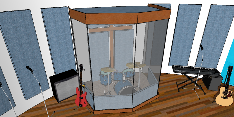 Here's the band, all happy again, trying out the prototype acoustic panels that I designed, and which solved the problem, allowing them to make heavenly music properly: