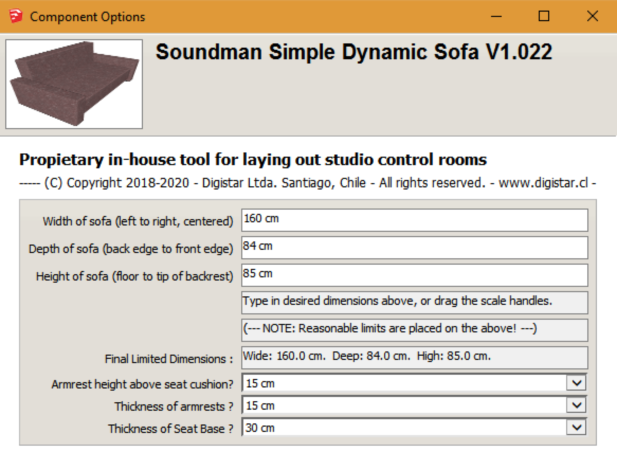 It is a dynamic component that you can just drop into your studio model, and adjust some very basic parameters. The axis is in the middle of the rear of the object, so as you adjust the width it should stay centered on that, and grow (or shrink) outwards in both directions at once.