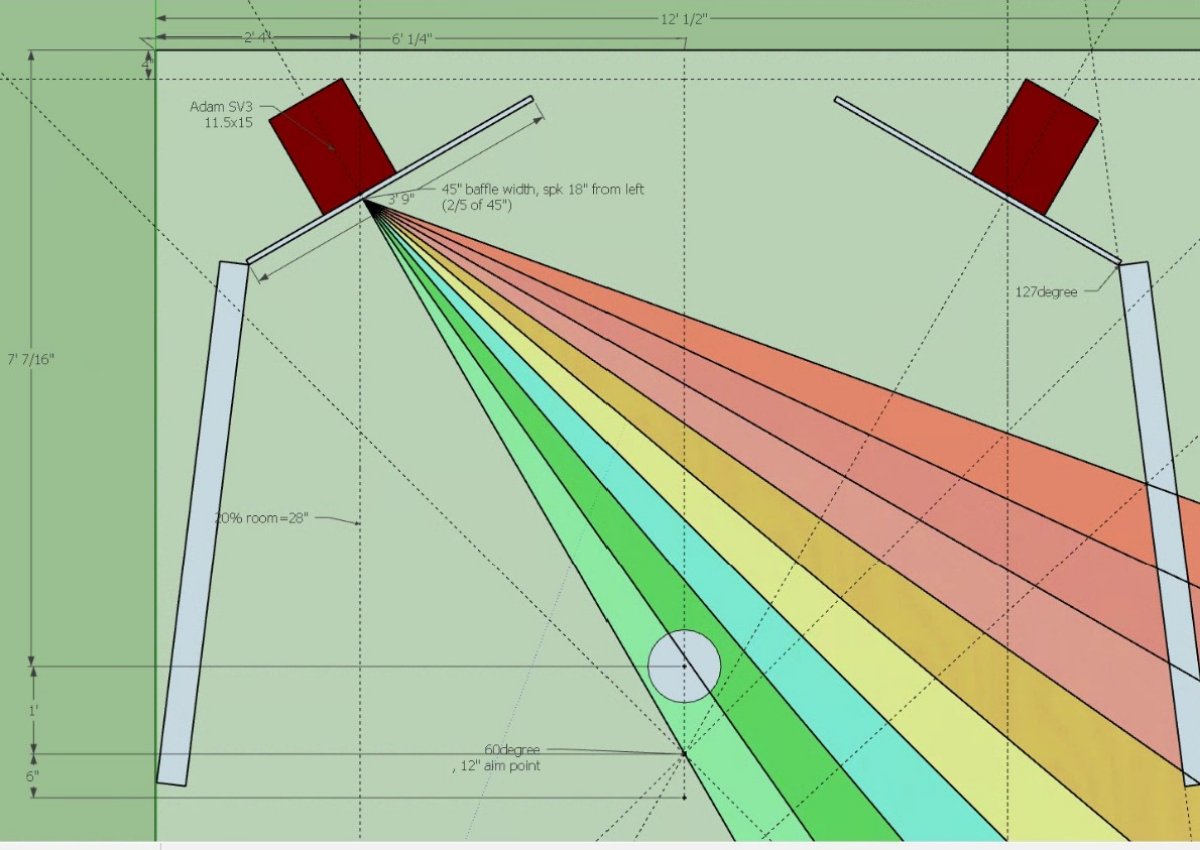 Thanks again for the feedback. I've read so much about guidelines to follow, in tight correlation of how a poorly done soffit can destroy the sound of the room, i'm a bit nervous to put it in action, but ... I hope to have most framing done this weekend. I know this will be a curve ball last minute, but I am designing for the Adam SV3, which I do not currently own. I do have a pair of Adam A8X and I will use those until I purchase the SV3, if I need it! But, I figure I can safely overbuild the frame and baffle, and then when needed, rebuild the enclosure box and alter the faceframe (baffle). I have not taken any measurements of the room yet, but I will this weekend...I am still waiting on the doors! But once I have the soffit and someof the treatments up, I will re-measure and make adjustments as necessary.