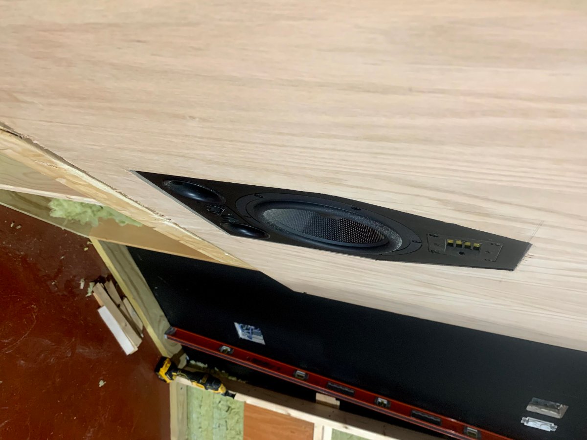 I have the soffit frames built. I am mounting the speaker box and will then take measurements to cut the baffle. I will do a super chunk on the bottom and will line the top with 3.5" all around rockwool.