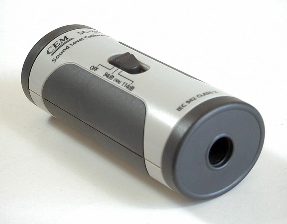 Just a cylinder thingy, with a hole on one end, and some control switches on the other end, or on the side. Fairly simple to use: Turn it on, press the mic on your meter into the hole at the end, making sure you get a good fit / tight seal, then check the number on the meter: most commonly, you calibrate at 94 dB (sometimes 114 dB). The calibrator puts out a tone at exactly 94 dB, so you want to see the meter show exactly 94.0 dB. Most meters have controls for adjusting that somewhere, and the better meters provide a different adjustment for each of the scales... As Jennifer pointed out, it is entirely possible for the meter to show different readings on different scales. So if your meter has that feature, then make sure to calibrate each scale separately: don't assume that calibrating one will calibrate all of them.