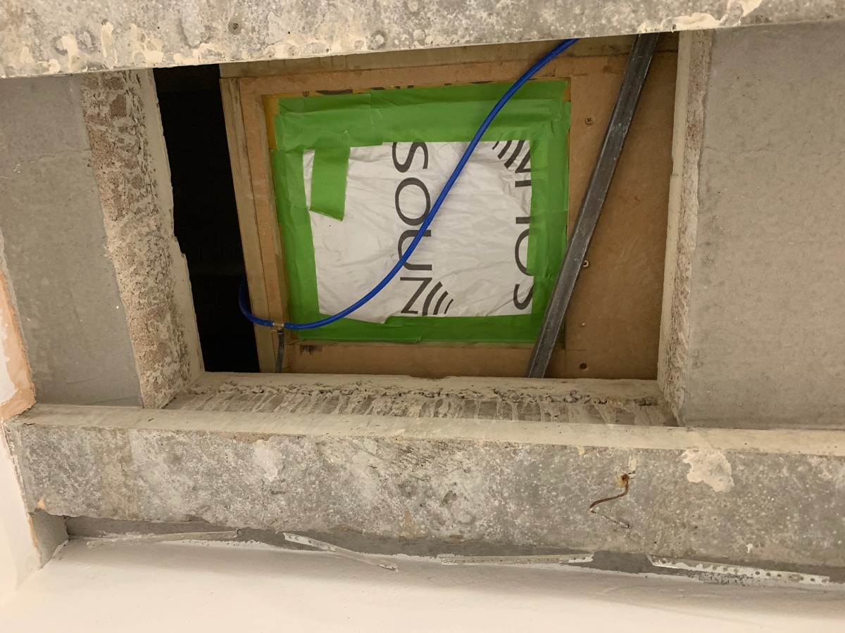 With the holes in the ceiling I decided to remove the timber altogether, then I plan to fit the sleeves, then shutter around them and pour concrete for mass to make the holes exactly right. As I’m writing this I have realised that this will couple the sleeve to the ceiling which we don’t want so I’ll actually need to separate them when shuttering then probably backer rod and caulk the life out of it? Stuart?