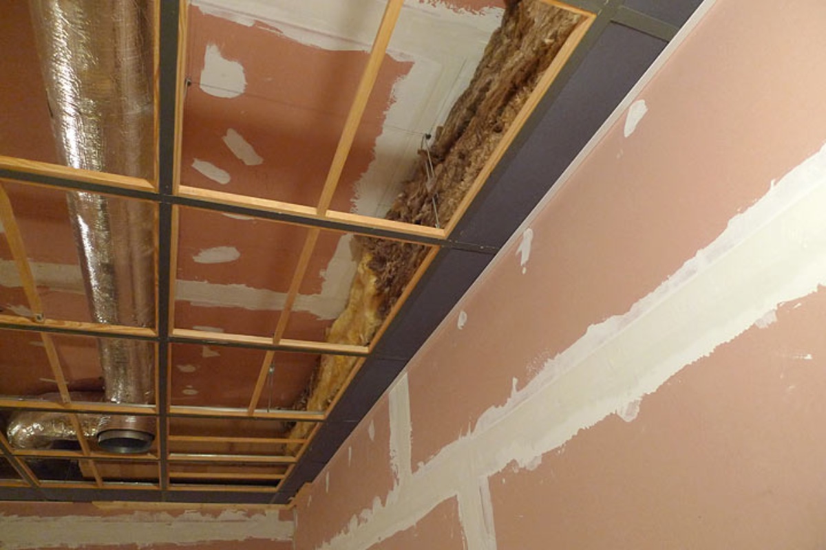 The drop-ceiling frame has been painted, installed and levelled.