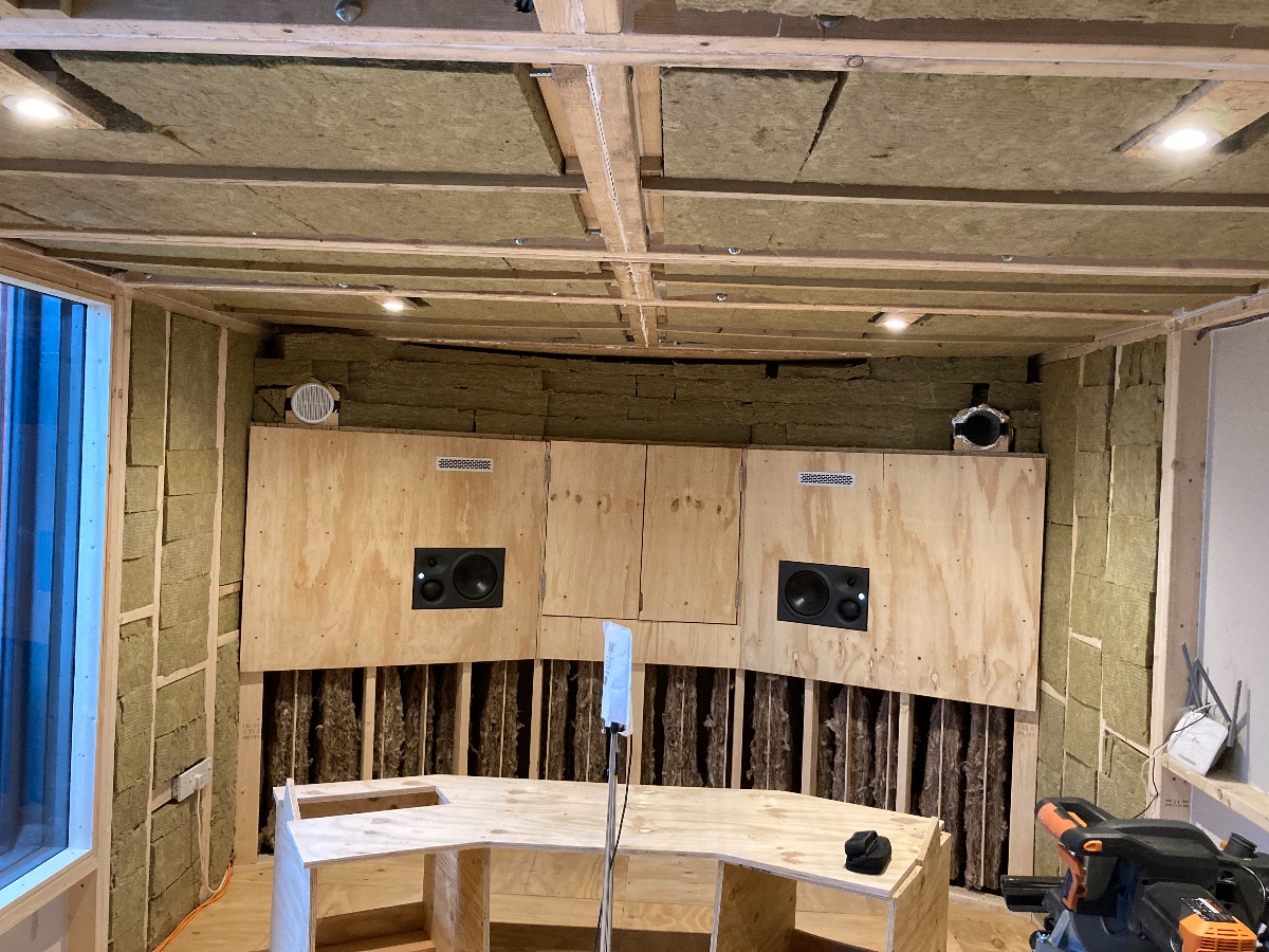 I also added the same rock wool to the first reflection points either side of the soffit walls, and will wait before putting any more in the side walls to get the rear treatment in and see what my measurements are like.