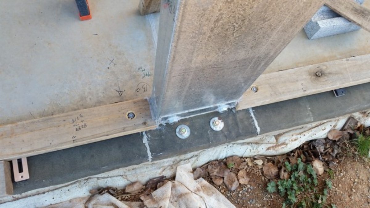 So I've spend a truckload of time getting my waterproofing right at the base. It starts with a layer of bitumen coated aluminium on the slab edge held in place by some treated pine (base plate 1) with a metal sill on top. The base plate of the framing will sit on this.