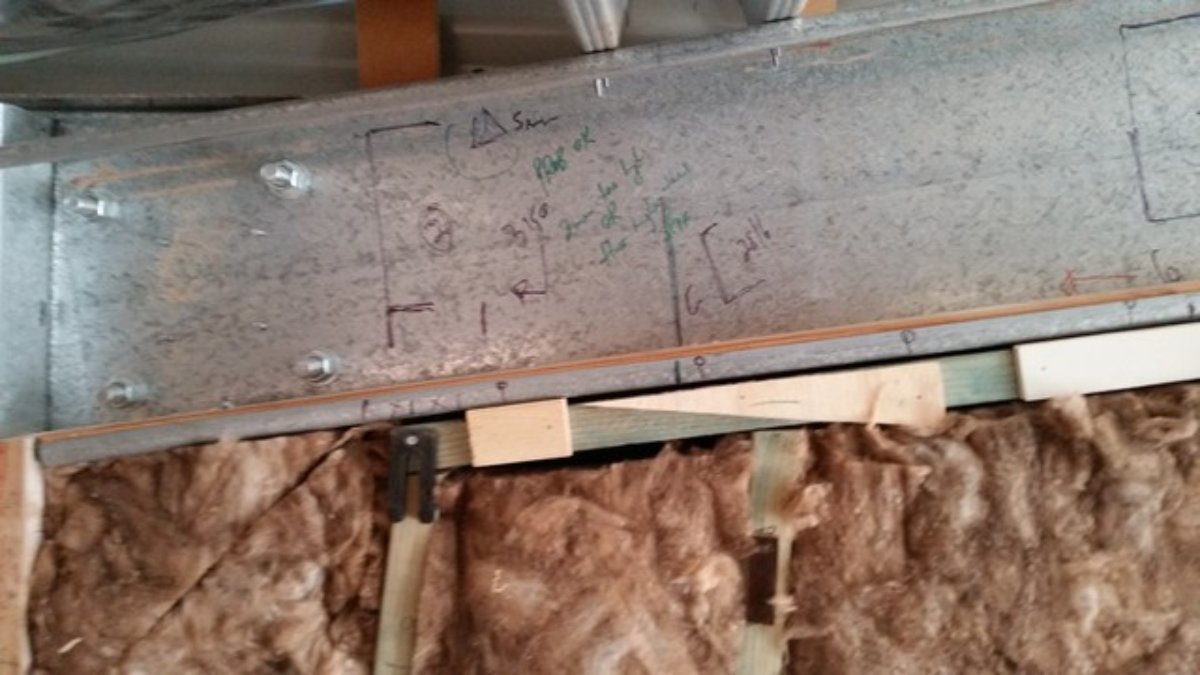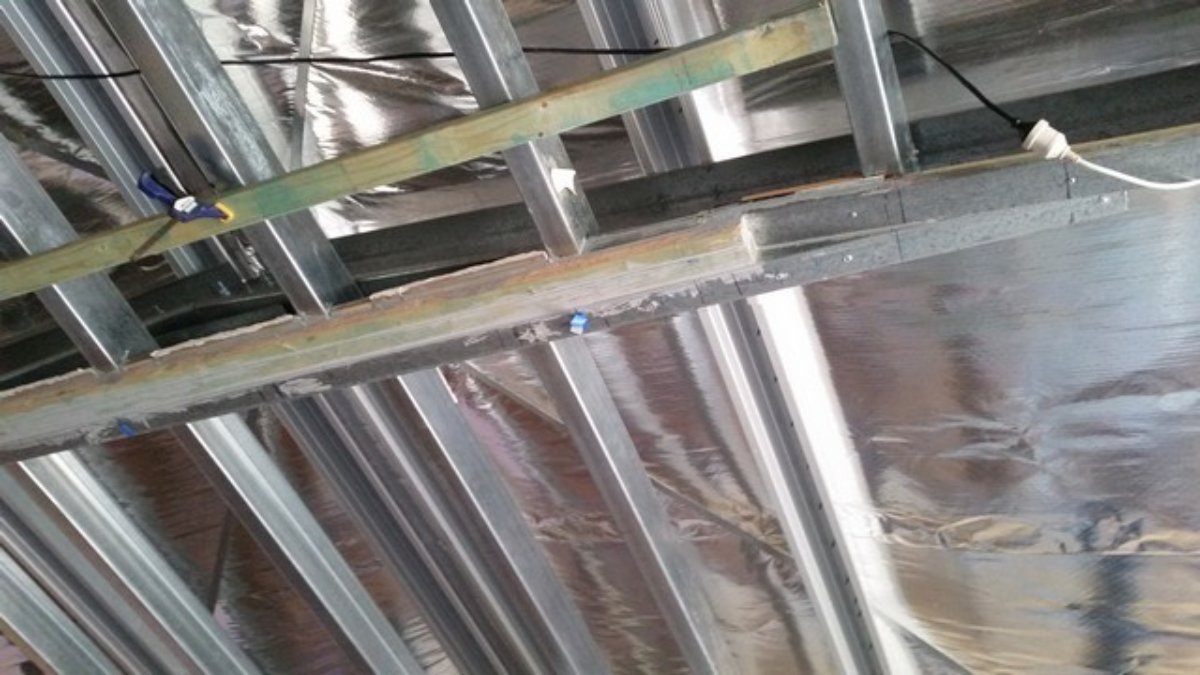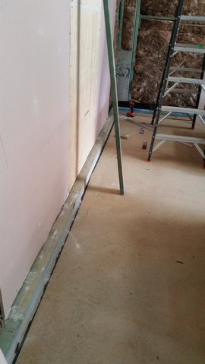 The much “loved” centre beam with all the added extras to get the mass up to the target level and some overhanging pieces to provide a solid surface to push the backer rod into once the ceiling is hung.