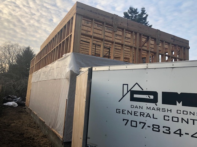 Southeast view. Plastic wrap on to keep dry for green glue app