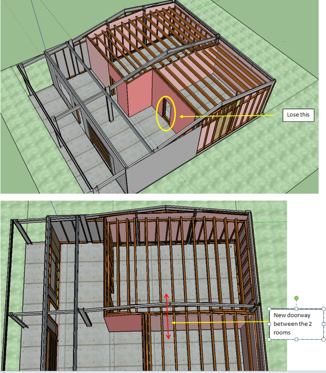 It is a bit more fiddly to execute and means I have to complete the side wall before framing the dividing wall.