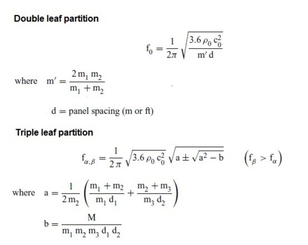 Gotcha. Do you know of any simplified equations that take all that into account?Soundman2020 wrote:As a general rule: Increasing any of the masses improves isolation in terms of dB, while increasing the depth of any of the air gaps improves isolation in terms of lower resonant frequency.
