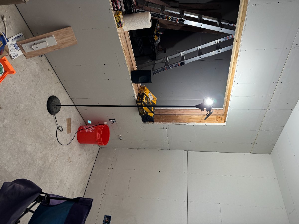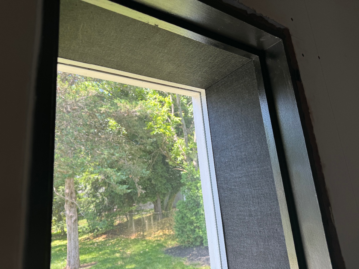 Of all the work done so far, I am most proud of these windows. I used Stuarts built on site method. The outside glass is 3/8” laminated set with glazing tape and caulked with PVC trim cleating it into place. The interior is 5/8” glass set on a neoprene seal and cleated in place with some interior trim ( interior glass not shown in this photo.) I stuffed the 1” gap between the frames with rockwool, then I found these great 1/2” polyester felt boards and covered it all up. The felt cut amazingly on a table saw and its rigid, but not so rigid that it creates a flanking path but has a nice friction fit. I also used a brad nailer to tack it for good measure. It looks super cool too.