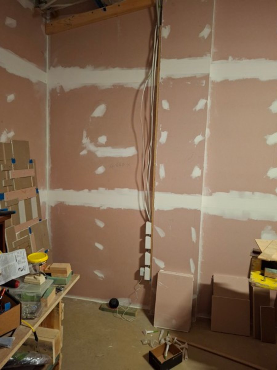 Slightly out of time sequence but some shots below of the completion of my LIVE ROOM walls. Amazing how you go much faster with experience!
