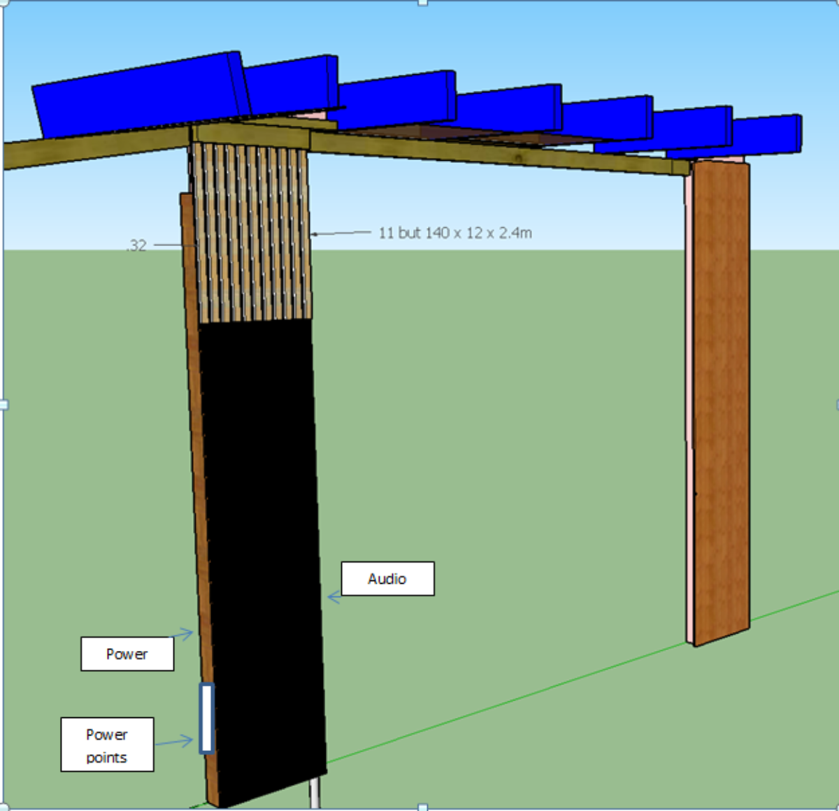 The power points on the column side of the room (in pics) will end up out of sight as I intend to put the cover below in front of the columns but make it slightly wider; then boxing in the power runs on one side and audio cables on the other.