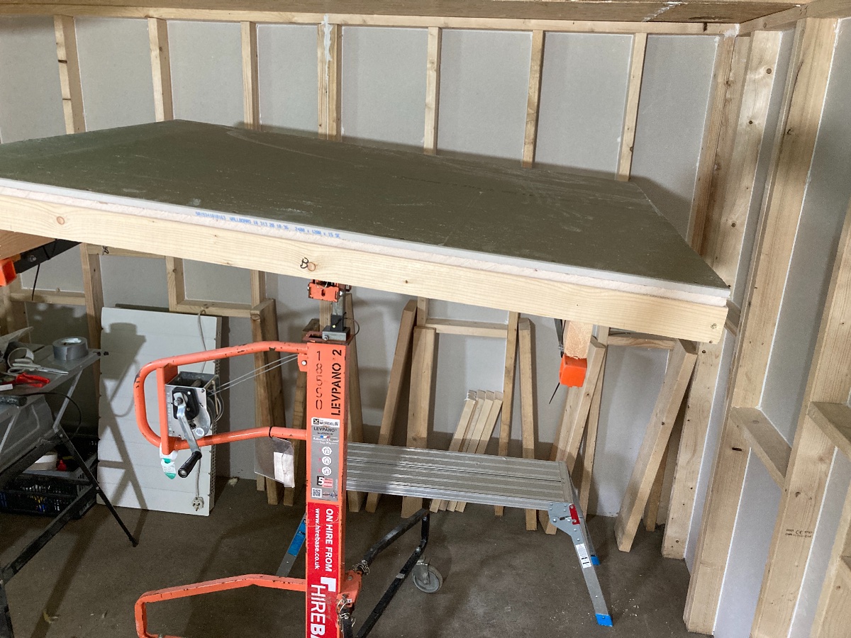 Ingenious. I am so glad they worked out ok as that is a lot for one person to do alone - I know from personal experience of getting sheets of 15mm fire-rated plasterboard onto a plasterboard lift alone.garethmetcalf wrote:Source of the post... 8 ceiling modules. As I was working alone these were actually assembled on the lift - I made the frame from 3x2, attached it to the lift, did a test lift to make sure it fit, then added the two layers of plasterboard whilst the frame was on the lift, then lifted into situ.