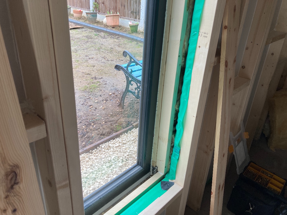 I then added some of the stained trim to go in the window cavity and was pleased that the stain id used matches the UPVC frame pretty well. Up close the finish is not great because I’d obviously put too much on in places. I don’t think I’ve got the energy to sand it back though!