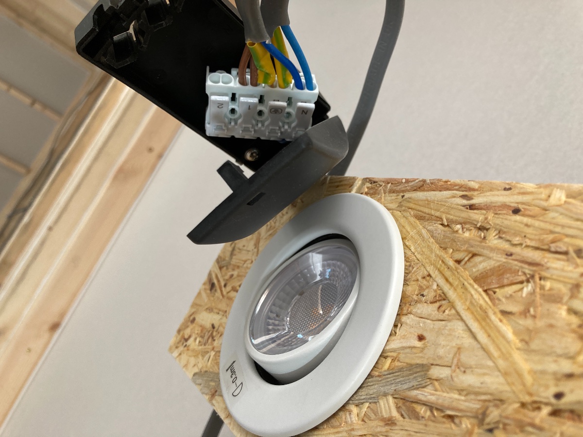 I also connected my light circuit to a plug so I could use the ceiling lights for the first time, whilst awaiting the electrician to connect it all up proper.