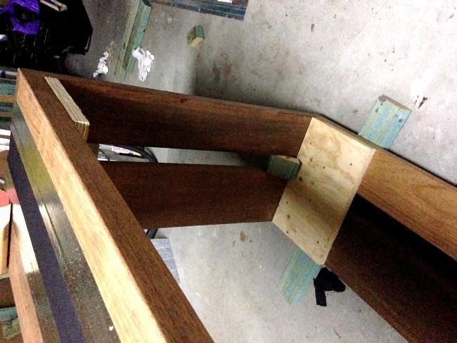 Another view of the layers clamped together while the glue cures.