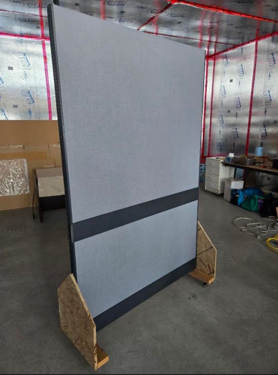 A few years ago I picked up some cubicle partitions for next to nothing and thought about rolling them up to use in my studio. Link to the design thread here: https://www.digistar.cl/Forum/viewtopic.php?f=5&t=1229. I know they're not designed for use in a recording studio (in terms of absorbed frequencies) but I thought they could still be useful. For example, to isolate a drum or make a sort of vocal booth. I have 4 of them. I did a pilot project today