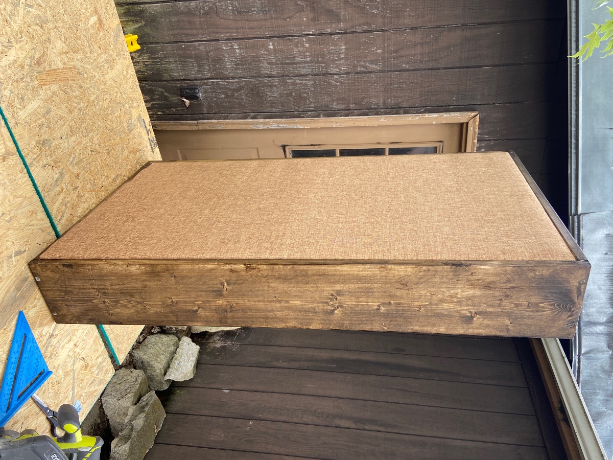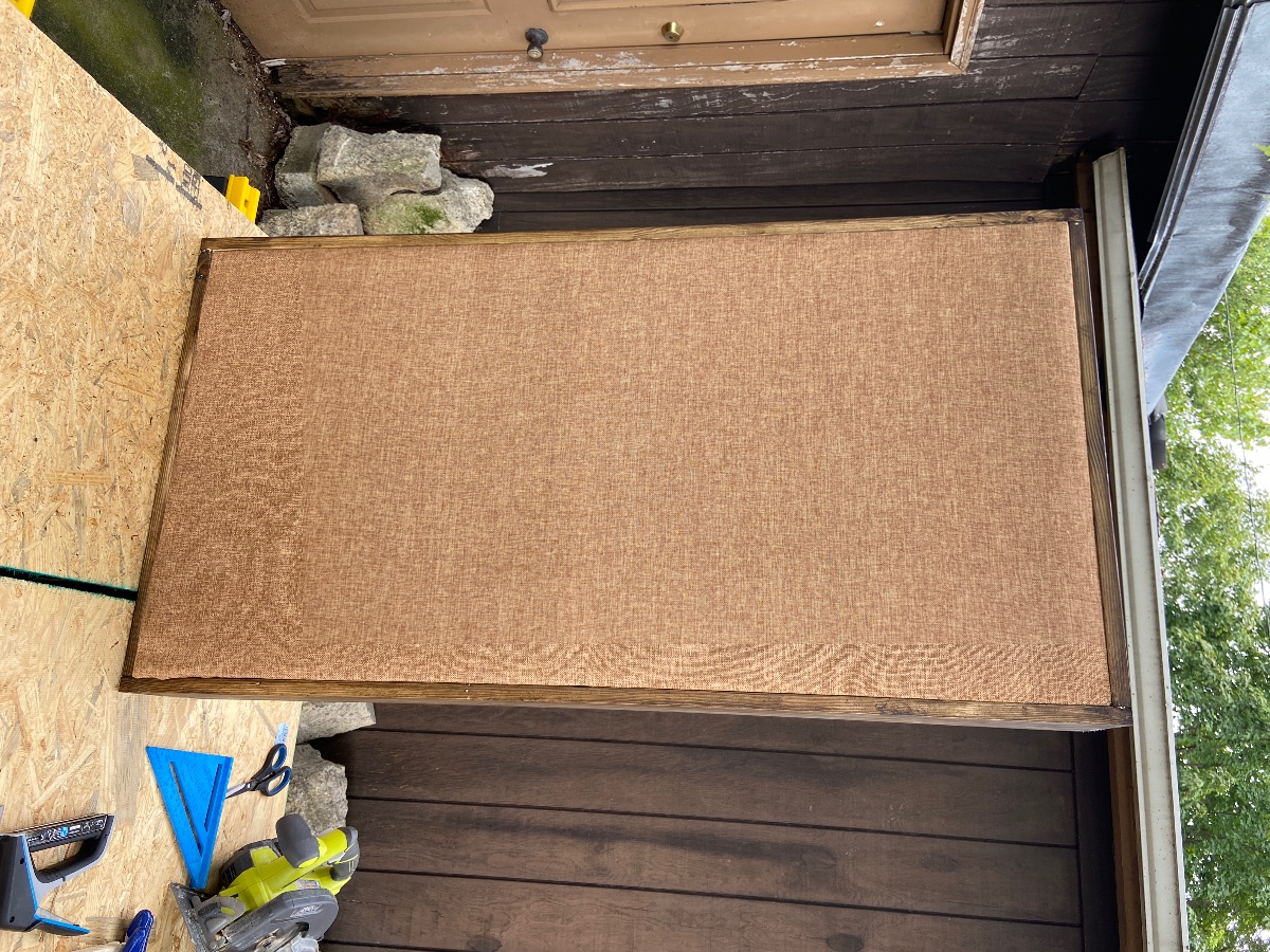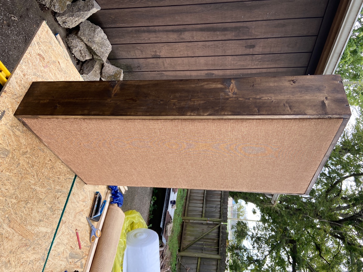 In regard to the panels I’ve been building they are nearing the final phase. I just finished all the staining this past weekend. We are just waiting on the fabric now which is delayed due to Covid (of course). But all that is left is build the inner frames which we can do in the mean time and then wrapping those with the fabric. So still a bit to go but I can see the finish line.
