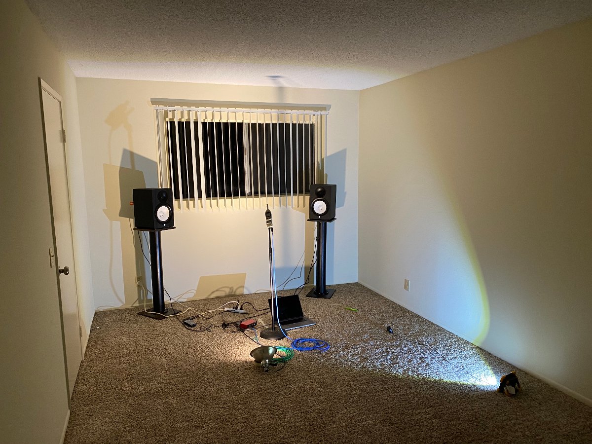 The bedroom is pretty symmetrical/ rectangular however, it's also quite a bit smaller than my last living room apartment studio. I think I'll do better though here in the bedroom with less distraction/ more privacy to record as my new living room is not very practical for a setup.